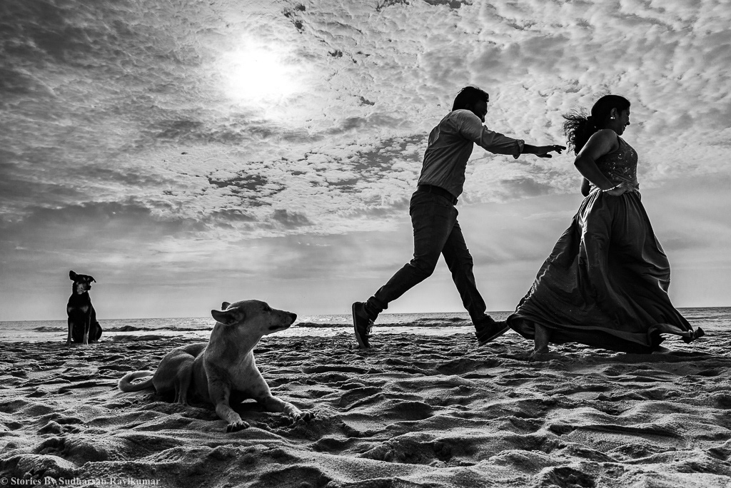 Photographed ny Sudharsan Ravikumar & Pon Prabhakaran We travelled along with the couple to capture all these beautiful memories, Trip started by 6am, we boarded Shatapthi train in chennai and we suggested the couple that we will shoot some stories in train, we started shooting from chennai and when we arrived in mysore, we shot some photos in front of the station and travelled through auto and reached our room, while checking in again we documented some photos. After resting for a while we went to St. Anthony church we shot some mainstream cheesy couple portraits by end of the day. Day 2: We started to mysore palace and shot some photos over there and while returning from palace we decided to hit the streets to shoot some photos with horses and people from there we again went to room refreshed and had breakfast we went to temple and shot some tradtional poses in tradtional attire, by evening we went to KRS back waters in sunset we shot some beautiful silhouette with clear sky. And in chennai couple took a villa for family get together and when they invited us for the party in villa, we suggested them that we will shoot some couple portraits in villa and beach, Eventually we created a beautiful story of them inside and villa and ECR beach. After party we travelled to home through metro with the couple there was tight security not to use DSLR, so we decided to use One plus 5 and we got few shots in metro too.