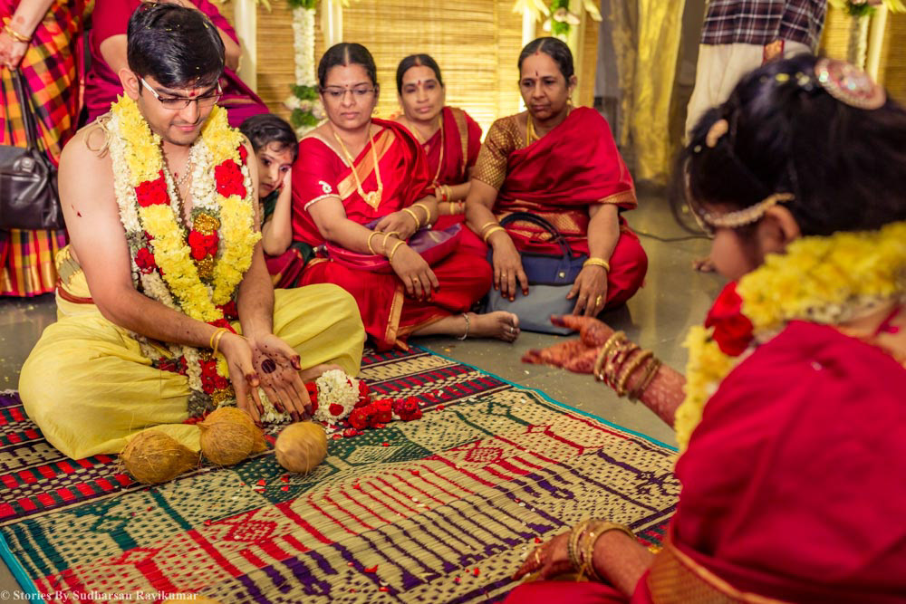 I have done a Iyengar wedding before, but the wedding of Kami and Kaushik at the MRC, Chennai was beyond everything I have captured before. It had all the ingredients to make it a big fat Indian wedding. Right from the pre-wedding rituals to the wedding ceremony, everything was so well planned and every single detail was given utmost care which is so evident in the output. And the reception was in Iskon temple banglore we are happy to get different set of portraits.